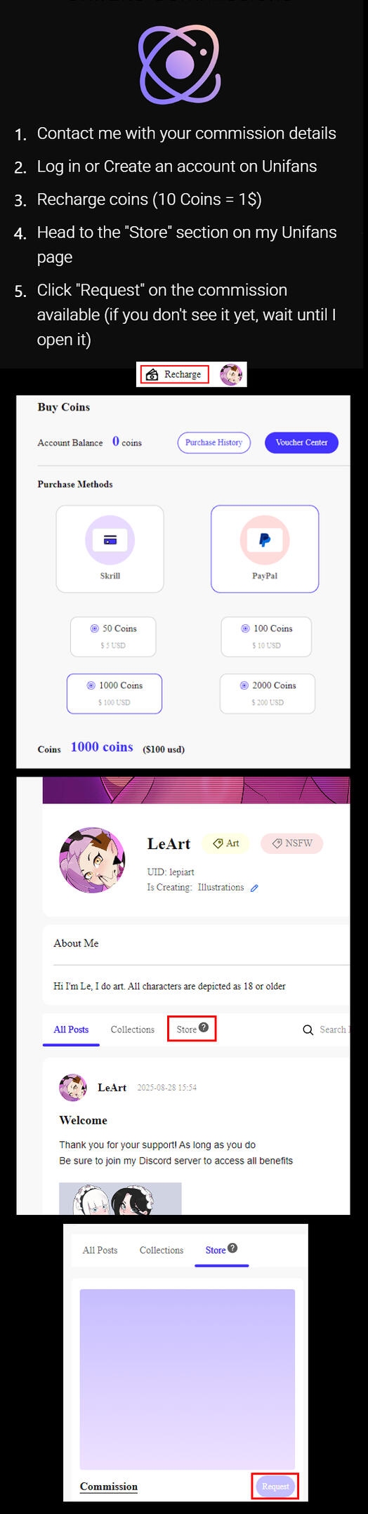 Private Commissions have a 25% feeReturning clients have a 10% discount!Check out the Fandom and Character discounts!